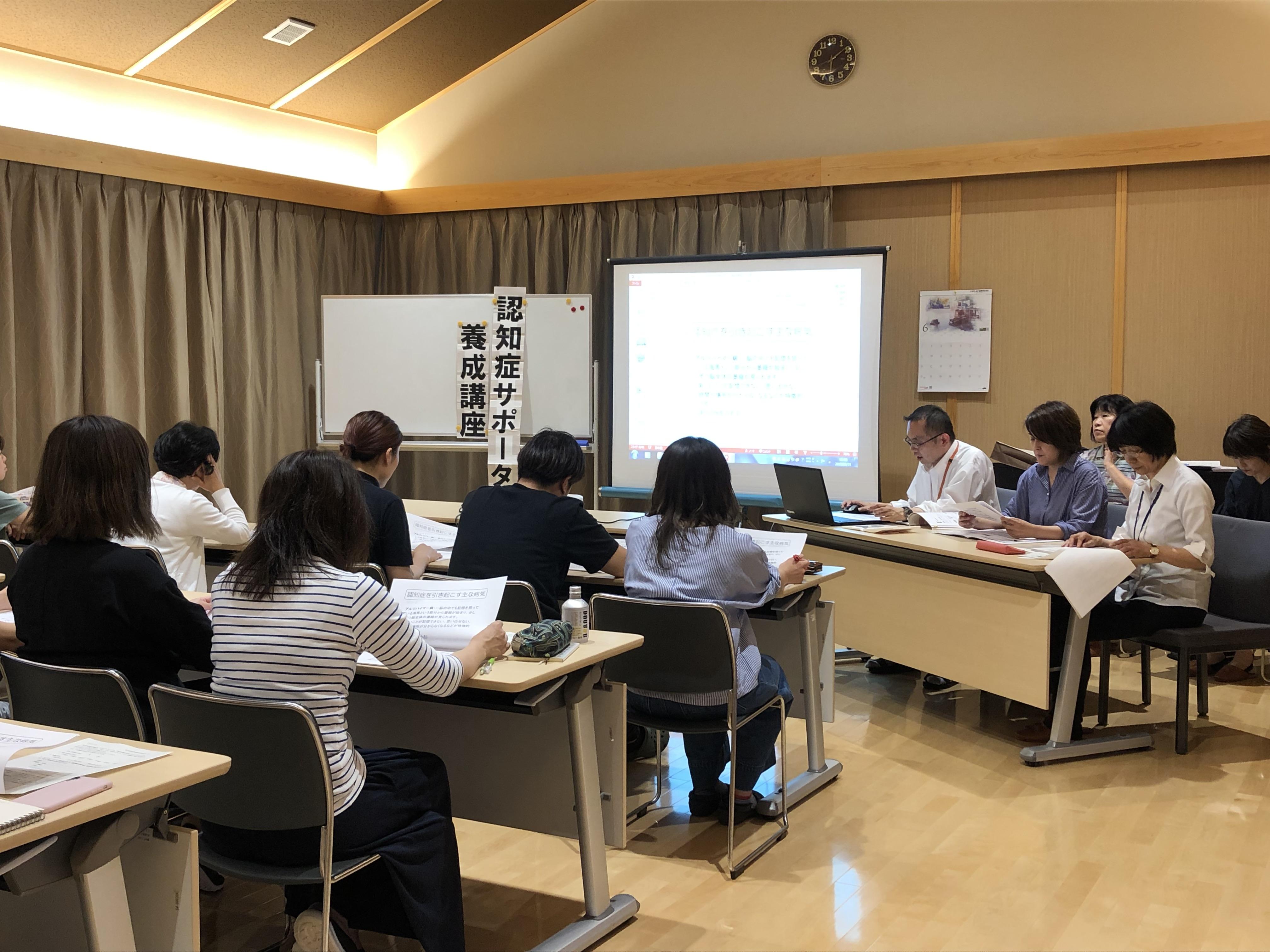 ゆめの里 今井 ブログ 認知症サポーター養成講座開催しました 2019.07.01特別養護老人ホーム 令和元年6/21にゆめの里今井にて認知症サポーター養成講座を当福祉相談センター職員3名、南西部包括職員、今井地区キャラバンメイト2名にてゆめの里今井の職員を対象に開催しました。 講義の途中で体操を行うなど終始和気藹々とした雰囲気のなかで、受講者の方々にも実際に寸劇を行ってもらうなどし、認知症の理解を深めて頂けたのではないでしょうか.....。 一覧にもどる 次へ
